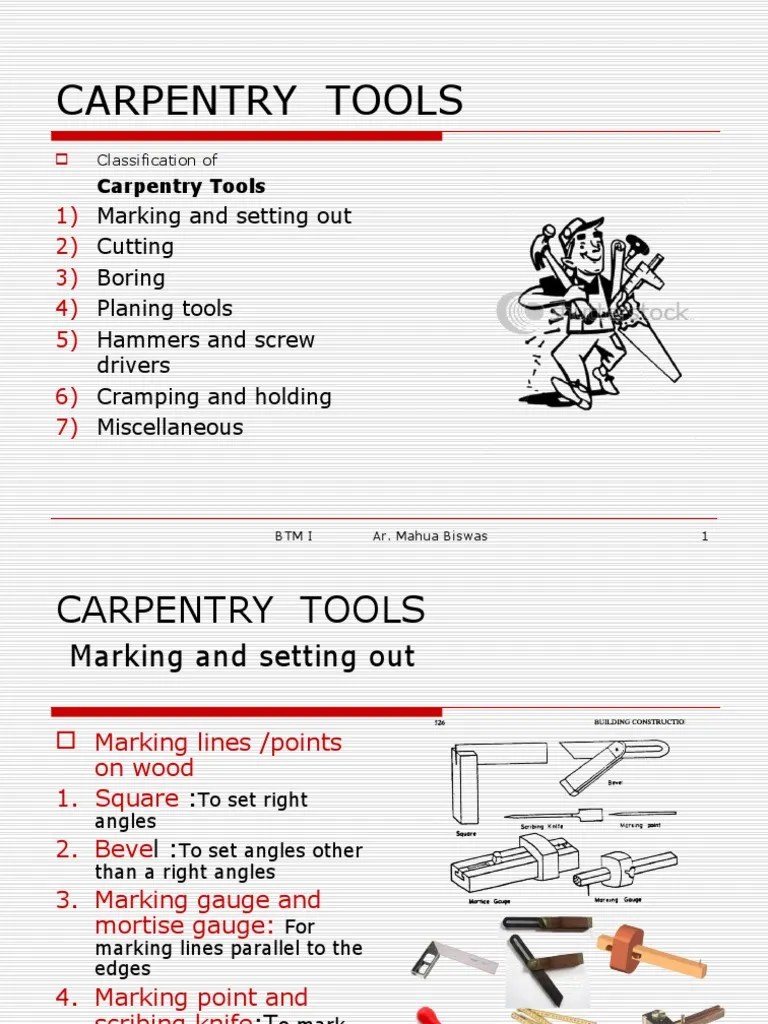 Carpentry tools thesis | Carpentry Tools Used In The Workshop Docsity