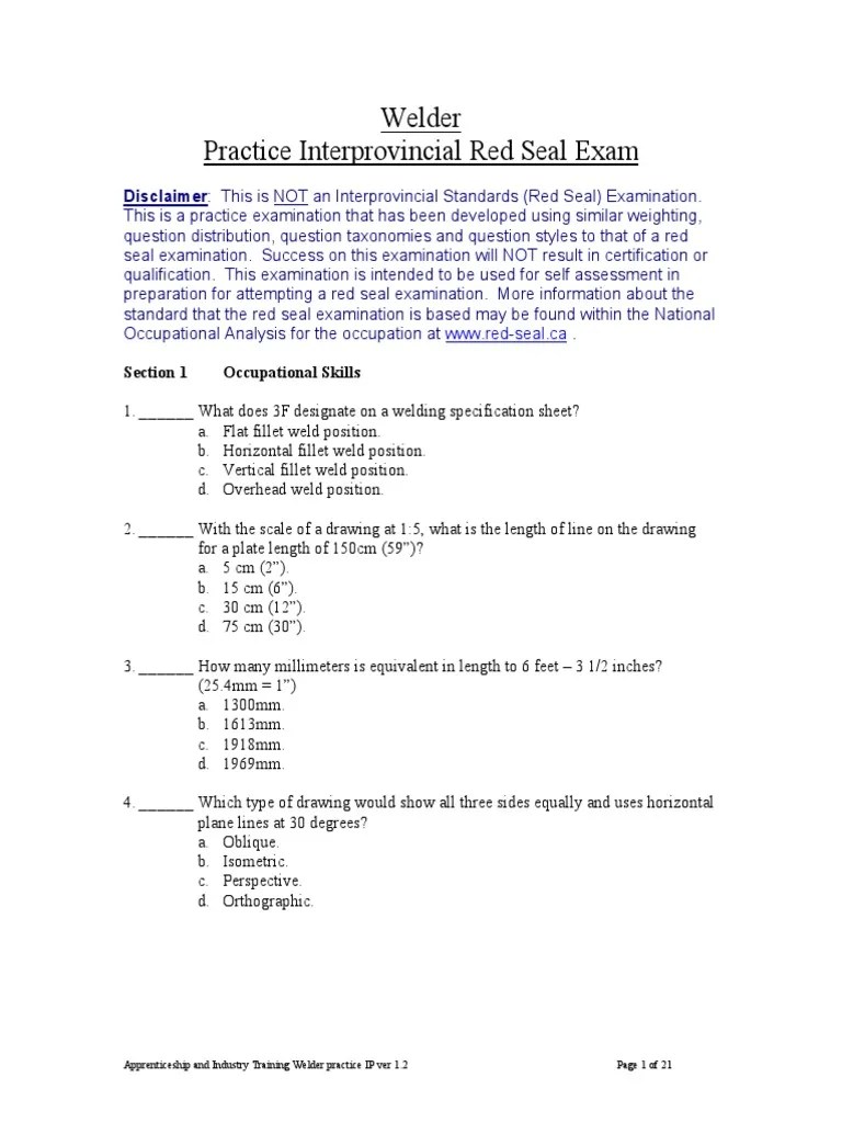 Check all flipbooks from stevesmith21. Carpenter exam practice questions available to help you pass the Red Seal Exam. Electrical Industrial IP Red Seal Practice Exam. See Red Seal Trades in Alberta Certified tradespeople may obtain a Red Seal on their trade or occupation certificates by successfully completing an Interprovincial examination.